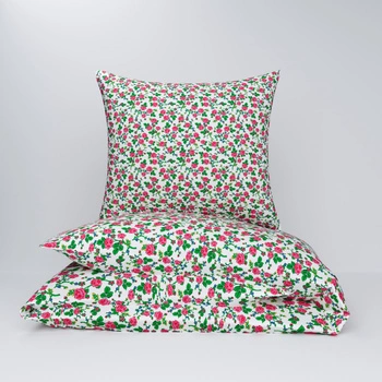 Pościel bawełniana 140x200 + poszewka na poduszkę 50x60 | 119bia | biała | róże góralskie