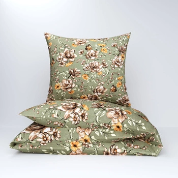 Pościel dla dziecka bawełniana 140x160 + poszewka na poduszkę 70x80 | 359oli | oliwkowa | kwiaty
