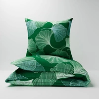 Pościel bawełniana 140x200 + poszewki na poduszkę 2*70x80 | 324Dzi | zielona | liście miłorzębu