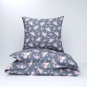 Pościel z kory 160x200 + poszewka na poduszkę 50x60 | 426grf | grafitowa | kwiat jabłoni