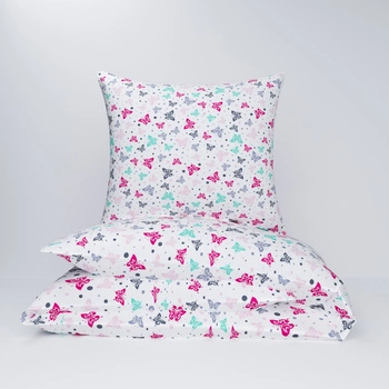 Pościel z kory 140x200 + poszewki na poduszkę 2*70x80 | 184pas | biała | motyle