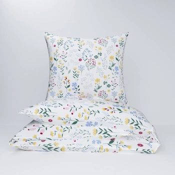 Pościel z kory 140x200 + poszewki na poduszkę 2*70x80 | 129blu | biała | polne kwiaty