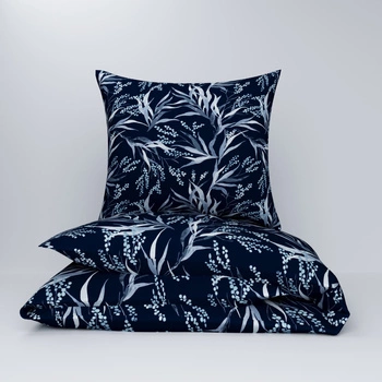 Pościel bawełniana 200x200 + poszewki na poduszkę 2*70x80 | D141grn | granatowa | liście
