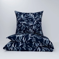 Pościel bawełniana 180x200 + poszewki na poduszkę 2*70x80 | D141grn | granatowa | liście