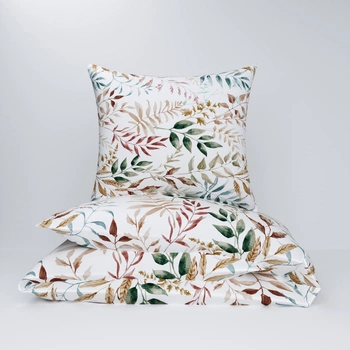 Pościel bawełniana 160x200 + poszewka na poduszkę 70x80 | 123beż | beżowa | liście