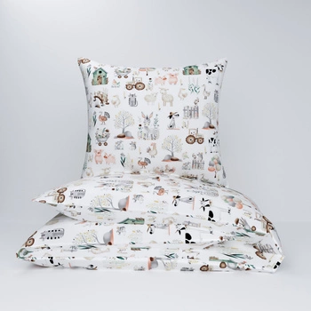 Pościel bawełniana 140x200 + poszewki na poduszkę 2*70x80 | 081zwi | biało beżowa | farma zwierzątka