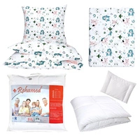 Zestaw pościeli 100x160 + 40x60 + prześcieradło we wzorze 80x160 | 196tur | szaro turkusowa | misie