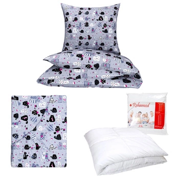 Zestaw pościeli 100x160 + 40x60 + prześcieradło we wzorze 80x160 | 061b-c | biało czerwona | koty