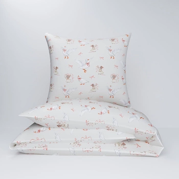 Pościel bawełniana 140x200 + poszewka na poduszkę 50x60 | 424bez | beżowa | gęsi i baletnice myszy