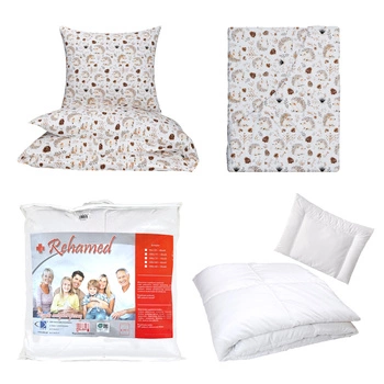 Zestaw pościeli 100x160 + 50x60 + prześcieradło we wzorze 80x160 | 020Nje | biało brązowa | jeże zwierzątka