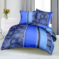 Pościel flanela 140x200 + poszewki na poduszkę 2*70x80 | 183nie | niebieska | koła pasy geometria