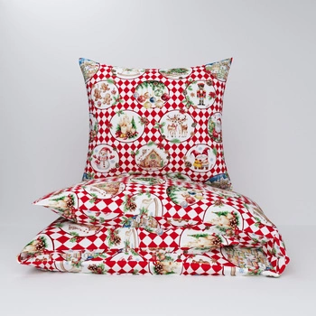 Pościel dla dziecka bawełniana 100x140 + poszewka na poduszkę 50x60 | 130rom | biało czerwona | świąteczna Mikołaje