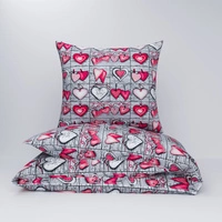 Pościel z kory 140x200 + poszewki na poduszkę 2*70x80 | 073Ncz | szaro czerwona | Walentynki serca