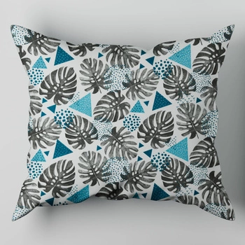 Poszewka bawełniana na poduszkę 50x50 | 052trk | biało turkusowa | liście monstery