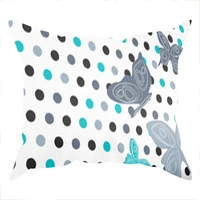 Poszewka bawełniana na poduszkę 40x70 | 490trk | biało turkusowa | grochy motyle