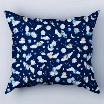 Poszewka bawełniana na poduszkę 40x70 | 202ast | granatowo pomarańczowa | planety kosmos