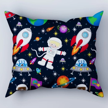 Poszewka bawełniana na poduszkę 50x60 | 202cie | granatowo pomarańczowa | planety kosmos