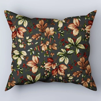 Poszewka bawełniana na poduszkę 50x50 | 389pas | biało niebieska | liście jesienne
