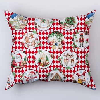 Poszewka bawełniana na jaśka 40x40 | 130rom | biało czerwona | świąteczna Mikołaje