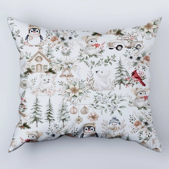 Poszewka bawełniana na poduszkę 40x80 | 102Tzi | biało zielona | trawa i liście
