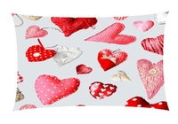 Poszewka bawełniana na poduszkę 50x60 | 073b-c | biało czerwona | serca walentynki