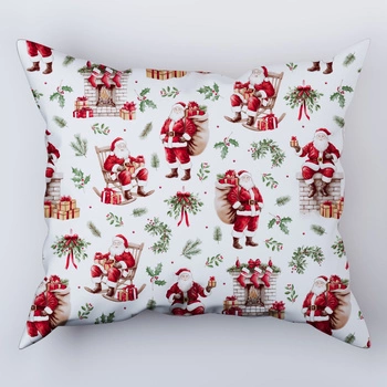 Poszewka bawełniana na poduszkę 50x60 | 002kom | biało czerwona | świąteczna Mikołaje