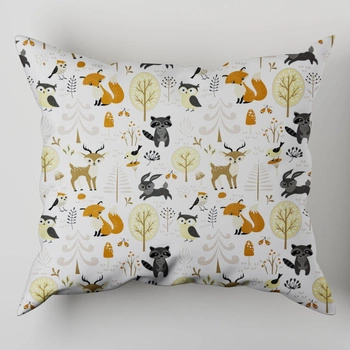Poszewka bawełniana na poduszkę 50x80 | 014jeleń | biało pomarańczowa | zwierzątka leśne