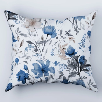 Poszewka bawełniana na poduszkę 70x80 | 102bgr | biało granatowa | listki gałązki