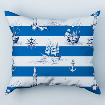 Poszewka bawełniana na poduszkę 50x60 | 065nie | biało niebieska | wzór marynarski