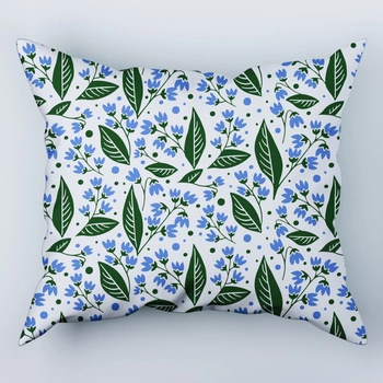 Poszewka z kory 50x60 | 027nie | biało niebieska | liście kwiaty