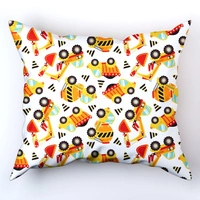 Poszewka bawełniana na poduszkę 40x70 | 404pom | biało pomarańczowa | auta budowlane