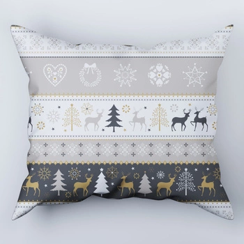 Poszewka bawełniana na poduszkę 40x70 | 446beż | grafitowo beżowa | świąteczna renifery
