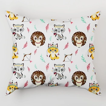 Poszewka bawełniana na poduszkę 50x50 | 099beż | biało brązowa | miś na campingu