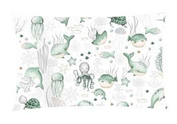 Poszewka bawełniana na poduszkę 50x60 | 044ctu | niebiesko zielona | liście egzotyczne