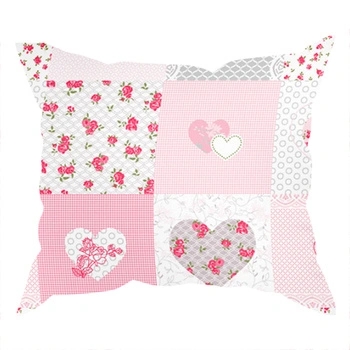 Poszewka z kory 40x40 | 137róż | różowa | patchwork z sercami