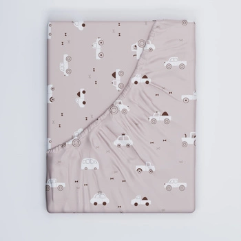 Prześcieradło z gumką do łóżeczka 80x200 bawełniane | 486beż | beżowe | pojazdy autka