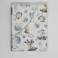 Prześcieradło z gumką do łóżeczka 90x200 bawełniane | 014las | biało niebieskie | zwierzątka leśne