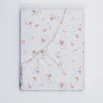 Prześcieradło z gumką do łóżeczka 80x200 bawełniane | 424bez | beżowe | gęsi i baletnice myszy