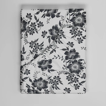Prześcieradło z gumką do łóżeczka 90x160 bawełniane | 116bsz | biało szare | kwiaty