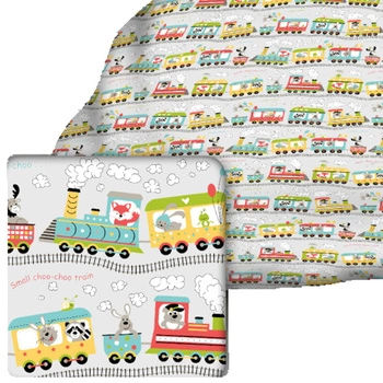 Prześcieradło z gumką do łóżeczka 90x190 bawełniane | 266sza | szare | pociagi ciuchcie
