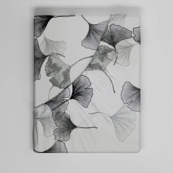 Prześcieradło z gumką do łóżeczka 40x90 bawełniane | 324b-s | biało szare | liście miłorzębu