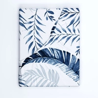 Prześcieradło z gumką do łóżeczka 90x190 bawełniane | 247gra | biało granatowe | liście