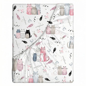 Prześcieradło z gumką do łóżeczka 70x140 bawełniane | 432roz | biało różowe | koty pupile