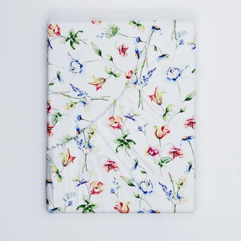 Prześcieradło z gumką do łóżeczka 90x180 bawełniane | 033bia | białe | kwiaty malowane