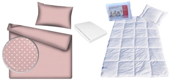 Komplet 100x160 + 50x60 + prześcieradło jersey 80x160 groszki pudrowe