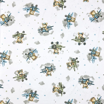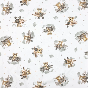 Prześcieradło na leżak do przedszkola | 303Sni | biało niebieskie | misie samoloty