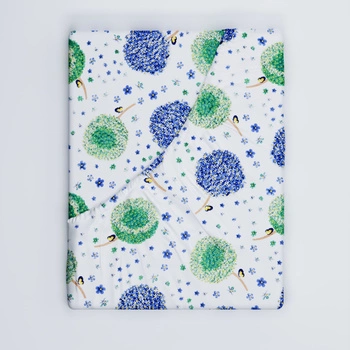 Prześcieradło z gumką do łóżeczka 80x200 bawełniane | 373nie | biało niebieskie | dmuchawce