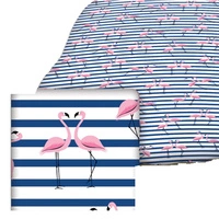 Prześcieradło z gumką do łóżeczka 90x200 bawełniane | 153granat | biało granatowe | flamingi pasy
