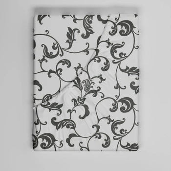 Prześcieradło z gumką do łóżeczka 90x180 bawełniane | 193b-s | biało szare | gałązki