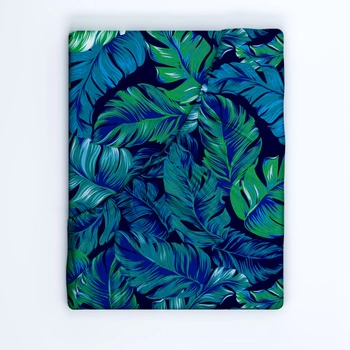 Prześcieradło z gumką do łóżeczka 70x140 bawełniane | 044ctu | niebiesko zielone | liście egzotyczne